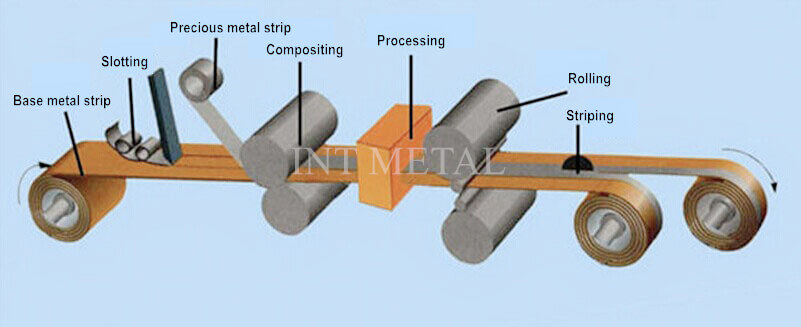 Base metal strip slotting- Hot compositing with precious metal- Precision Rolling- Stripping